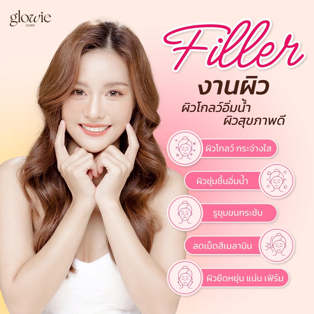 ฟิลเลอร์ (Filler) คือสารเติมเต็มผิวที่สังเคราะห์มาจาก Hyaluronic Acid ซึ่งเป็นสารที่มีอยู่ในร่างกายตามธรรมชาติ จึงมีความปลอดภัยสูง และสามารถสลายไปได้เองโดยไม่ตกค้าง โดยใช้ในการฉีดเข้าไปใต้ผิวหนัง เพื่อแก้ไขหรือเติมเต็มร่องลึก รอยยุบ หรือเพิ่มวอลลุ่มให้กับใบหน้า เช่น ร่องแก้ม ใต้ตา ขมับ หน้าผาก คาง จมูก หรือริมฝีปาก เมื่อฉีดเข้าสู่ผิว ฟิลเลอร์จะช่วยเติมเต็มบริเวณที่ต้องการ เพิ่มความยืดหยุ่น ความชุ่มชื้น และช่วยให้ผิวดูอิ่มฟูขึ้นอย่างเป็นธรรมชาติ